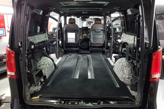 Полная шумоизоляция салона: пол, двери, потолок, багажник, колесные арки.