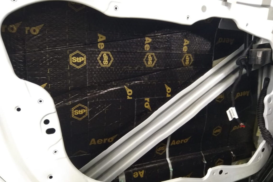 Полная шумоизоляция салона: пол, двери, потолок, багажник, колесные арки.