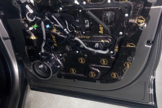 Полная шумоизоляция салона: пол, двери, потолок, багажник, колесные арки.